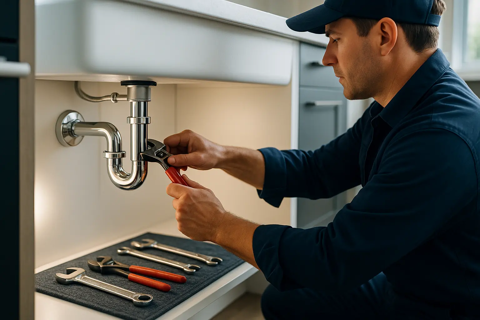 Fuite sous évier : agissez vite pour éviter dégâts majeurs. Intervention en moins de 2h avec remplacement de siphon ou robinetterie, test d’étanchéité et rapport technique inclus. 🚨 Évier bouché : diagnostic rapide et débouchage professionnel. Baisse pression ? Diagnostic chauffe-eau pour solution durable. Rénovation : RDV devis gratuit avec expert. Pièces d’origine pour réparations durables. Service 24/7, même week-ends et jours fériés. 😊